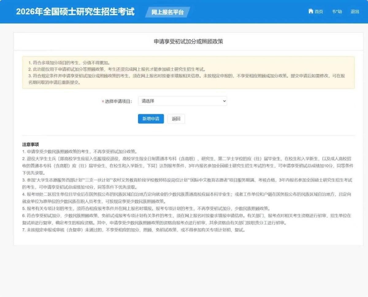 1.研招统考网上正式报名时间为10月16日至27日(网上预报名时间为2025年10月10日至10月13日,每日9:00—22:00),请务必于截止日期前完成考研加分申报和证明材料电子版报送工作。