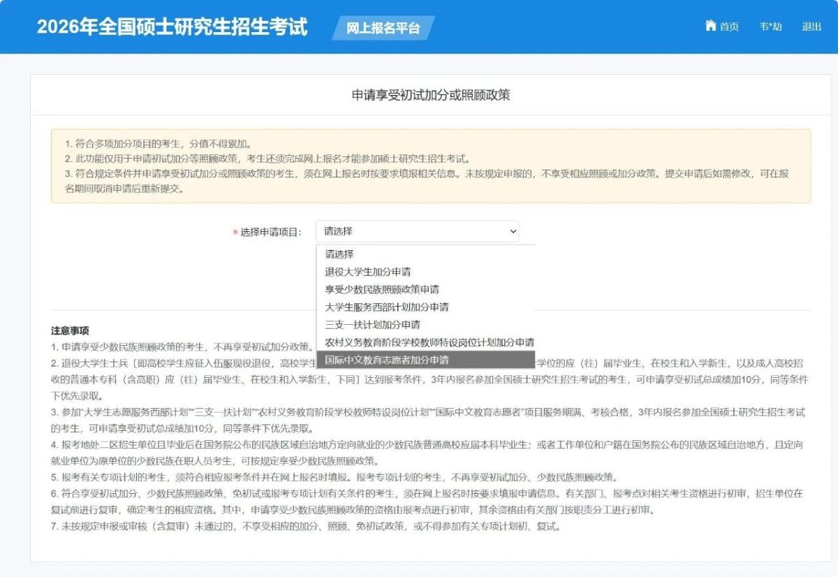 根据教育部印发《2026年全国硕士研究生招生工作管理规定》的要求,符合申请享受考研初试加分政策的国际中文教育志愿者,须在“全国硕士研究生招生考试网上报名平台”报名时按要求填报相关信息,由有关部门按职责分工进行审核。未按规定申报或审核(含复审)未通过的,不享受相关加分政策。