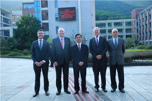 9月13日下午,新西兰-中国关系促进委员会主席唐纳德·麦金农爵士(SirDon McKinnon)、新西兰驻华大使麦康年先生(John McKinnon)、新西兰驻成都总领事孔思达先生(Alistair Crozier)一行访问我校。市外侨办领事处副处长肖畅、美大处李岚、新西兰驻成都总领事馆政策顾问张娜女士陪同访问。