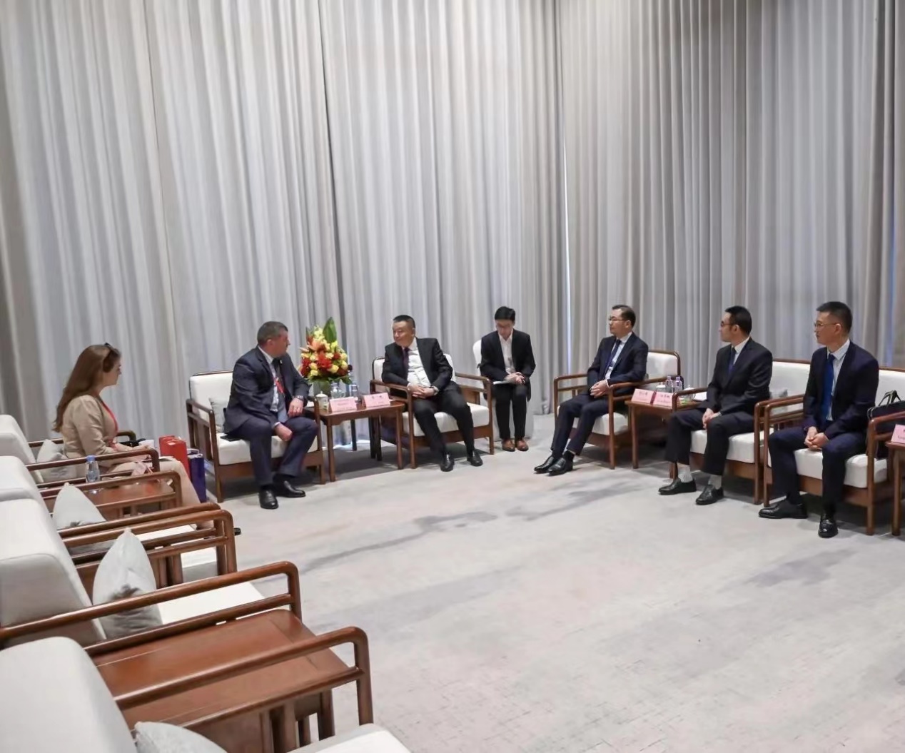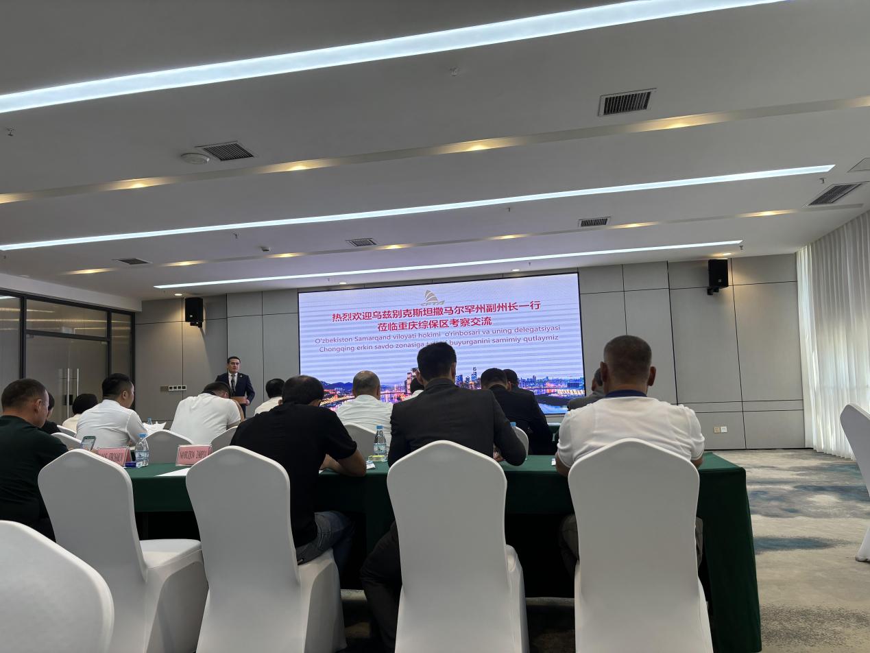 5月23日下午,乌兹别克斯坦撒马尔罕州副州长率政企经贸代表团参访综保区,并召开经贸合作交流会,集团监事会主席梅时雨出席活动并致辞,胡业爽老师担任交传翻译。