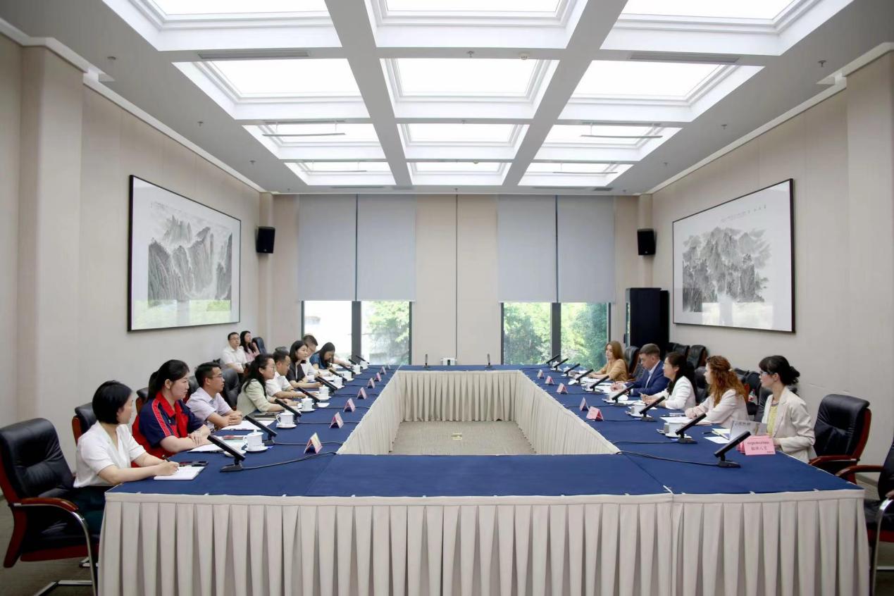 5月24日下午,中白“巨石”工业园代表团到访西部(重庆)科学城管委会进行座谈交流,胡业爽老师担任现场交传翻译。