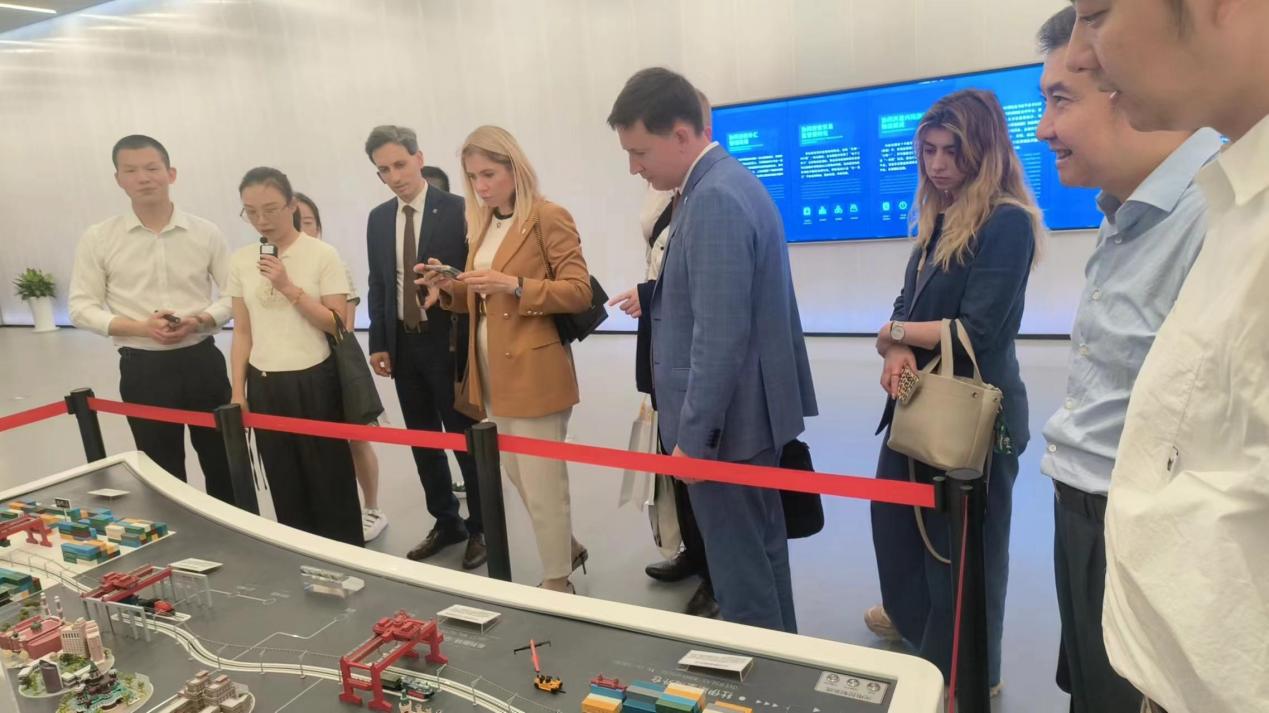 5月28日,俄罗斯中心投资代表团考察重庆两果综保区,保税港集团公司副总经理肖中平、渝俄经贸专班负责人沈宏与俄方银行董事会副主席博格丹诺夫进行会谈并一同参观保税港会展中心,杨希老师担任现场交传。