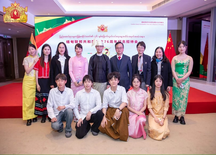 2024年2月27日下午,四川外国语大学副校长祝朝伟教授受邀出席缅甸驻重庆总领事馆在渝中区环球金融中心举办的庆祝缅甸联邦共和国独立76周年招待会。我校国际交流与合作处处长张幼斌、东方语言文化学院院长罗文青、东方语言文化学院缅甸语专业教师张惠美和2021级部分学生随团参加。