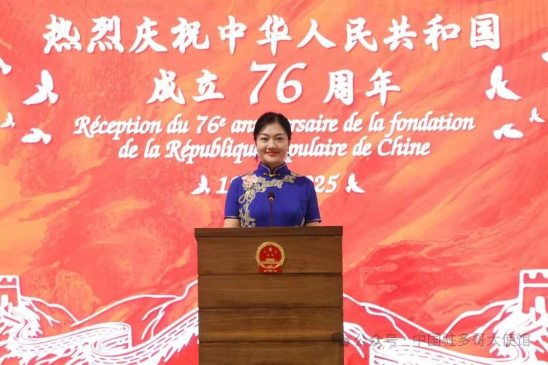 当地时间9月29日,中华人民共和国驻多哥共和国使馆举办庆祝中华人民共和国成立76周年招待会。洛美大学孔子学院中外方院长携孔子学院教师代表受邀参加了此次国庆招待会。
