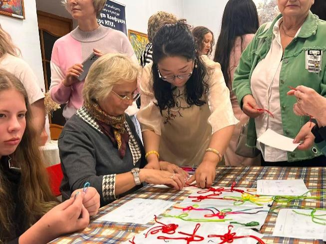 汉语教师张洋带领大家走进了中国结的编织世界。她细致讲解中国结所蕴含的吉祥寓意,并逐步示范编织技巧。在场观众兴致盎然,纷纷动手尝试,每个人都完成了独具意义的中国结手工作品,留下了一份具有中华情谊的特殊礼物。
