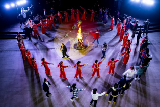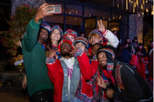点燃一把篝火,驱散了海拔1300多米高山的寒冷,连结和温暖了主人和客人的心。外籍师生换上土家族服装,与乡民一起手拉着手,圈围着圈,跳起了土家舞蹈——摆手舞。音乐一转一跳,双手一散一合,火光在笑颜上晃动,夜晚的山谷变成了欢乐的海洋。最后,高亢的唢呐声一响,外籍师生进入恒合乡的第一晚联欢演出在齐声合唱的《云上恒合》中落下帷幕。