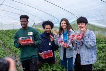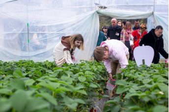 一进入农文旅融合发展的示范村八一村,外籍师生便欢快地直奔开满油菜花的田野;在入选中国美丽休闲乡村的石坪村,大家到村民王春夫妇种植的22亩草莓基地里摘草莓。没有污染的果香味浓郁芬芳,主人热情欢迎大家在草莓大棚里边摘边品尝,不一会儿,一个个饱满的草莓便填满了篮子。