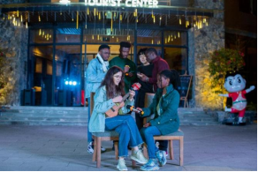 节目进行到一半时,中外两位主持人邀请川外领导和老师上台即兴表演节目。市教委派驻恒合乡驻乡工作队长、四川外国语大学副校长严功军用俄语演唱了《莫斯科郊外的晚上》,来自俄罗斯等国的留学生在友好的气氛中上台合唱;国际合作与交流处副处长朱天祥演唱了意大利歌曲《我的太阳》。随后,来自吉尔吉斯斯坦、卢旺达、日本的留学生表演了尤克里里弹唱《朋友》。这些节目都不断引来现场观众的跟唱或合唱,营造出和谐共生、美美与共的友好氛围。