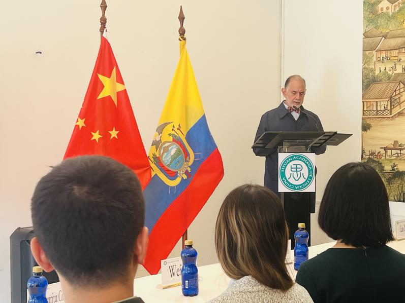 思源中国语学校孔子课堂校长曹孝宏在致辞中感谢中国驻厄瓜多尔大使馆和厄瓜多尔国防部的信任与支持,思源作为本次培训任务的承办方,深感荣幸,此次中文培训课程将为厄瓜多尔军人搭建深入了解中国文化、增强双边沟通能力的重要平台。