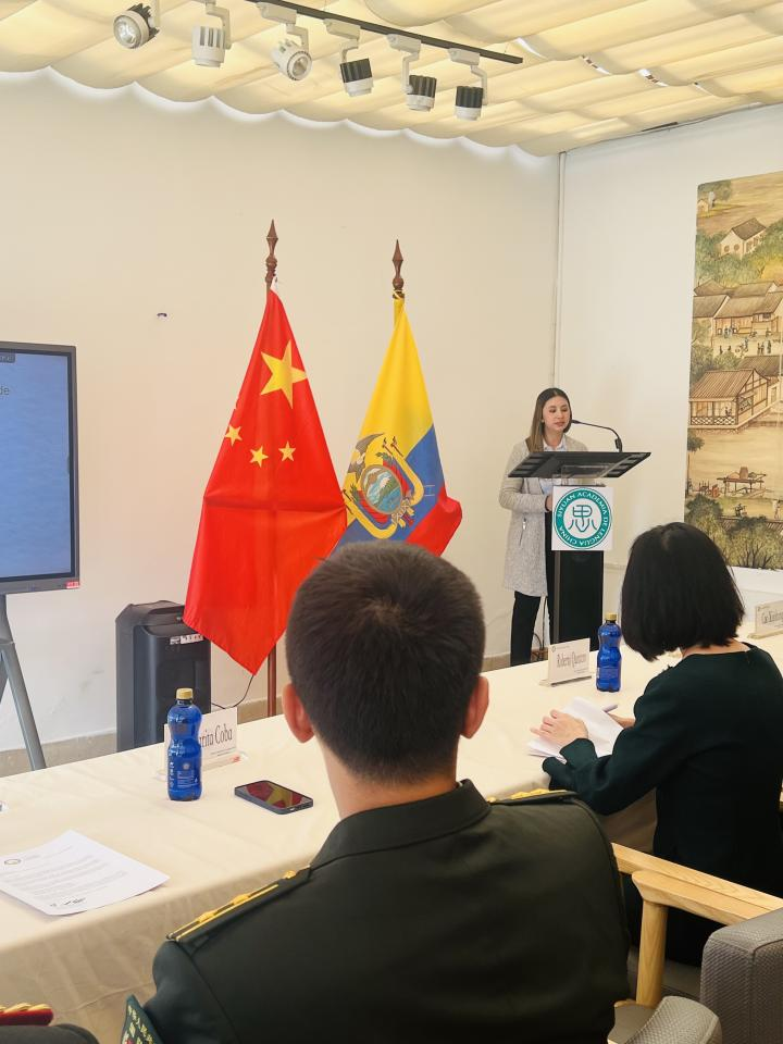 厄瓜多尔国防部外事局局长Margarita Coba在发言中表达了对中国驻厄瓜多尔大使馆的支持与思源中国语学校孔子课堂筹备工作的衷心感谢,并指出掌握中文不仅是个人能力的提升,更是厄中两国友谊不断深化的体现。