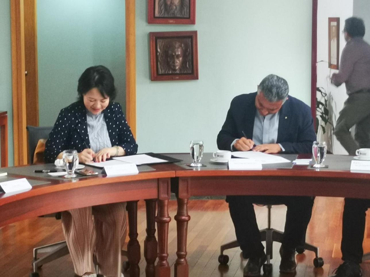 12月14日,访问团赶赴哥伦比亚的麦德林玻利瓦尔天主教大学,受到校长Diego Marulanda Díaz、副校长Luis Eduardo Gómez Á������lvarez的热烈欢迎。对方人类科学学院院长、教育学院院长、国际处处长、语言中心主任等参与会谈,双方就外教引进、师生互派达成意向。苟朝莉副书记与Diego Marulanda Díaz校长代表双方学校签署了合作协议。会后,访问团参观了玻利瓦尔天主教大学的博物馆,并就其中的中文收藏进行了诠释和交流。
