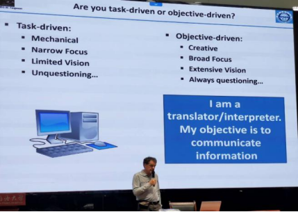 讲座伊始,弗格森先生通过“六度分隔原则”对自己进行了一个简要的自我介绍,并向大家分享了两段习主席的讲话英译版,引出了“Task-driven”和“Objective-driven”这两个概念。