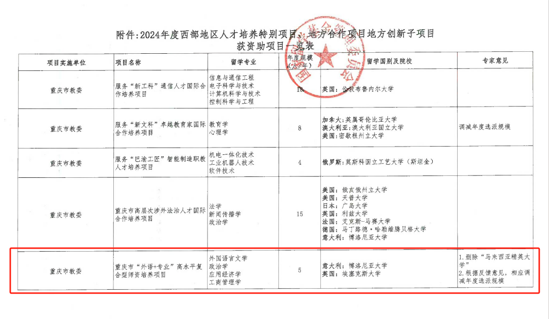 Recently, the China Scholarship Council (CSC) announced the approved projects under the 2024 Regional Innovation and Cooperation Initiatives of sponsored Special Talent Training Program for Western China. SISU has been approved for its proposed “Chongqing ‘Foreign Languages + Specialization’ High-Level Interdisciplinary Faculty Development Program”.